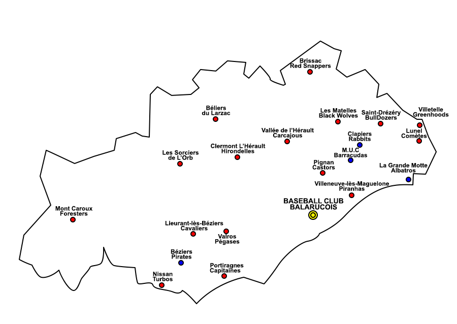 Nous sommes un club de baseball situé sur la commune de Balaruc-le-Vieux, près de Sète, entre Montpellier et Béziers.